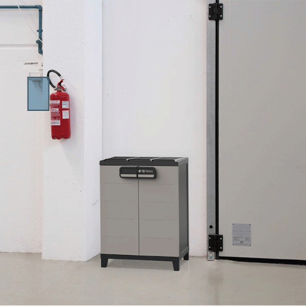 Ormar za sortiranje otpada, 3-struki s poklopcem, za vreće za smeće. Antracit svijetlosivi ormar dimenzija 66x40x88cm idealno se uklapa u vaš stan, kuću ili vikendicu. Ormar je izrađen na način da su vreće odlično zaštićene ukoliko posjedujete kućne ljubimce.