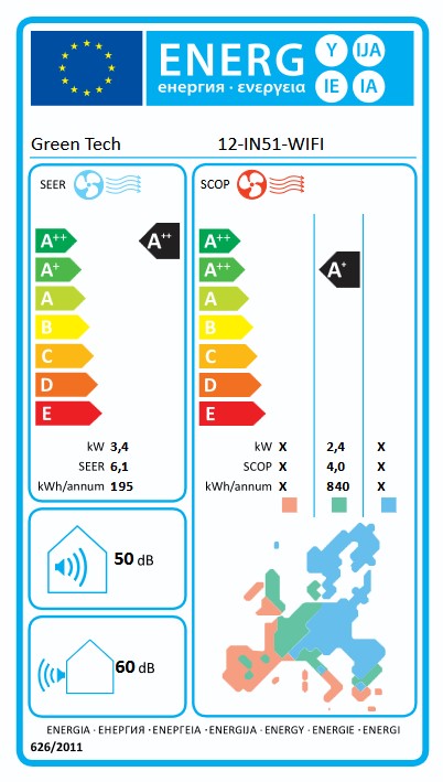 Godišnja potrošnja energije: 195 kwh/a (hlađenje); 840 kwh/a (prosjek)