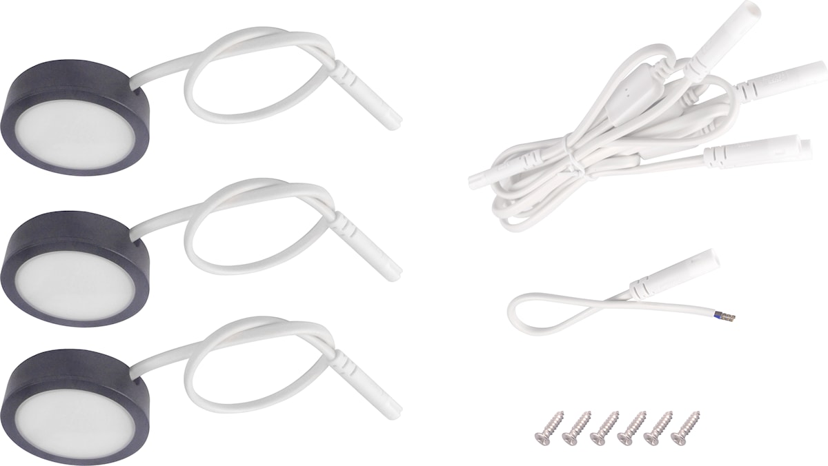 LED svjetiljka za kuhinjsku radnu ploču (pakiranje od 3 komada), nadgradna i ugradna. Crna boja.